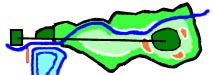 ティーショットはコースセンターの2本松ねらい。フェアウェーが狭くOBになり易いので170Y〜190Yの比較的平坦な場所に打ってアプローチ勝負がおすすめ。